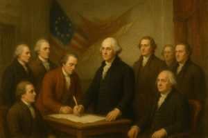 On July 4, 1776, the Continental Congress adopted the Declaration of Independence, officially marking the birth of the United States of America. After years of conflict, the new nation secured its freedom and began shaping a constitutional government. The U.S. Constitution, adopted in 1787, introduced a federal system built on principles of separation of powers, representation, and individual rights.