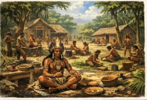 Major indigenous groups such as the Tupi, Guarani, Ge, and Arawak lived across vast territories. They cultivated crops like manioc (cassava), maize, sweet potatoes, and peanuts. Indigenous societies had complex social structures, spiritual beliefs connected to nature, and rich oral traditions. Contrary to early European misconceptions, these societies were well adapted to their environments and maintained extensive networks of communication and exchange.